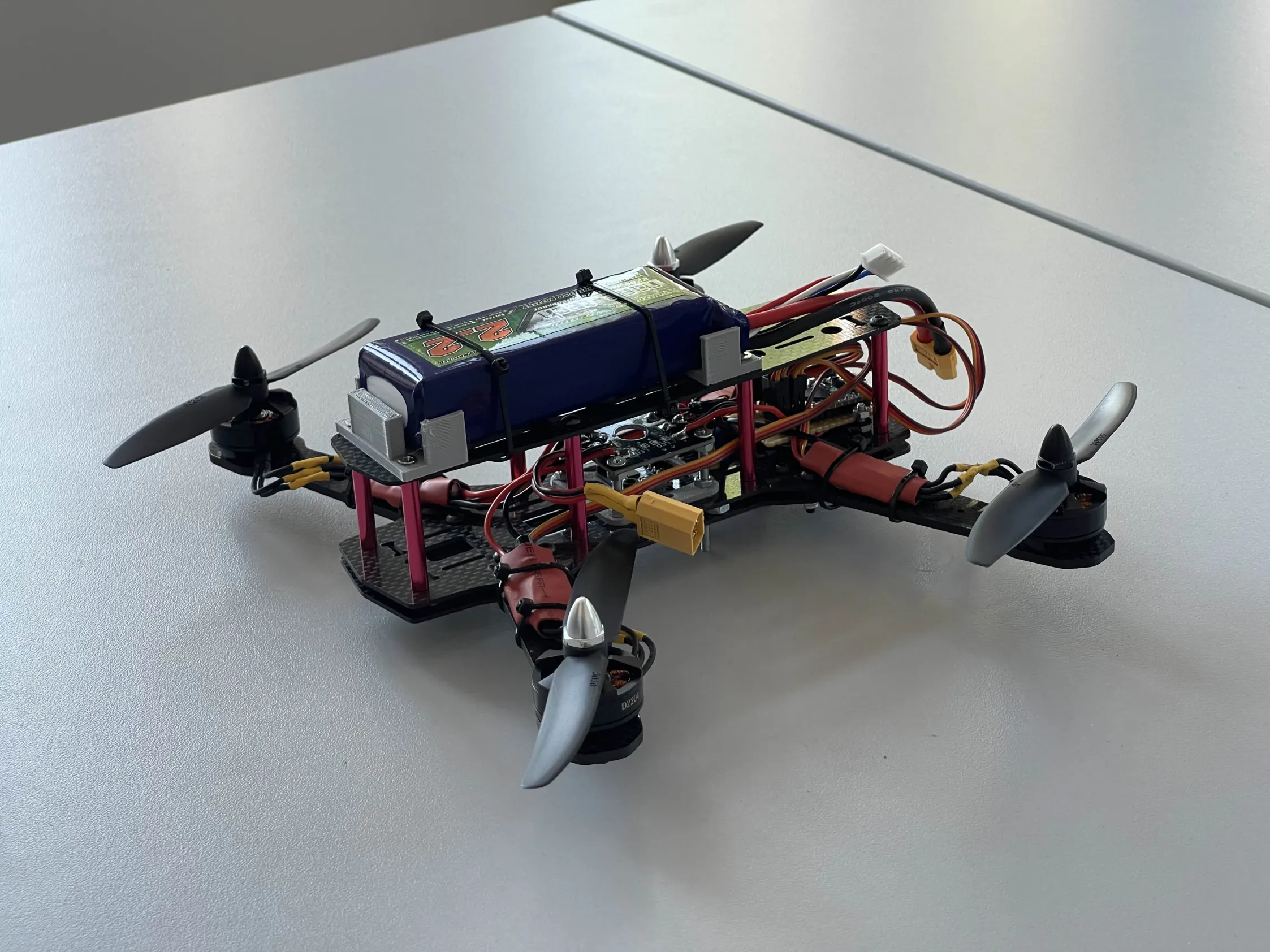 Рам или конструкција мора да буде крута да би смањила савијање приликом вибрација. Одличан материјал за ову употребу је карбон. Карбон је лаган, чврст и крут. Осим основне конструкције коришћени су 3Д штампани носачи са ИМУ и ултразвучни сензор.